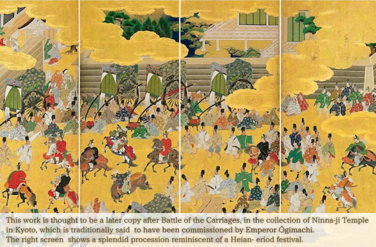 From the Kamakura period (1192–1333) picture scroll “Kasuga Gongen Genki E(Legends of Kasuga Shrine)”, we can see that lions, the king of beasts, are depicted together with peonies, the king of flowers, on sliding door paintings in the residences of aristocrats.